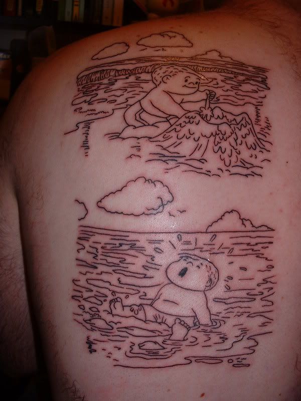 upper back piece 1/4th of a gut piece idea that im just going to not complete and just make symmetrical at this point smallish piece on the inside of my left forearm lower back "tramp stamp". leave me alone i was twelve i dont have pictures but in random pictures of me you may see parts of some i have an idea for what would be a really awesome chest piece but there is only one person as of now that id want to do it and at this point thatd be impossible. also i may just be done with tattoos. i dont want to be covered and i like what i have thus far. also holding back for awhile will allow me to still think about/consider tattoo designs when im old/older -------------------- Little monkeys making money